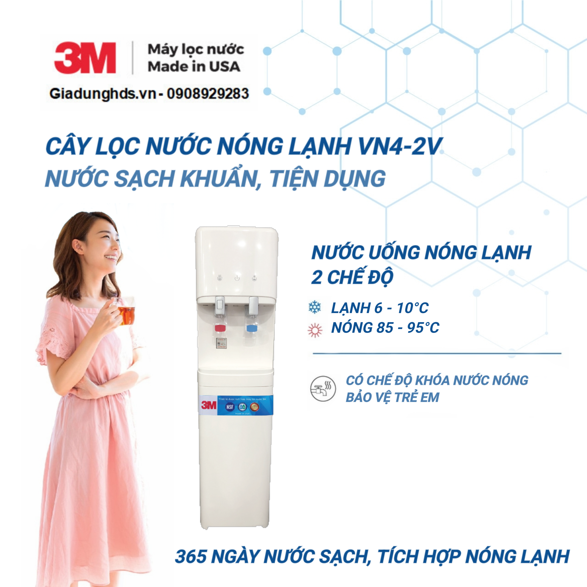 | Sản phẩm đạt tiêu chuẩn kiểm định quốc tế và Việt Nam | Đạt chứng nhận NSF42, NSF53 của Trung tâm hợp tác An toàn thực phẩm và nước uống thuộc Tổ chức y tế thế giới (WHO) Đạt tiêu chuẩn do Hiệp hội chất lượng nước quốc tế WQA chứng nhận Nước sau lọc đạt chuẩn nước uống trực tiếp theo tiêu chuẩn QCVN 6-1:2010/BYT do Bộ Y Tế ban hành |