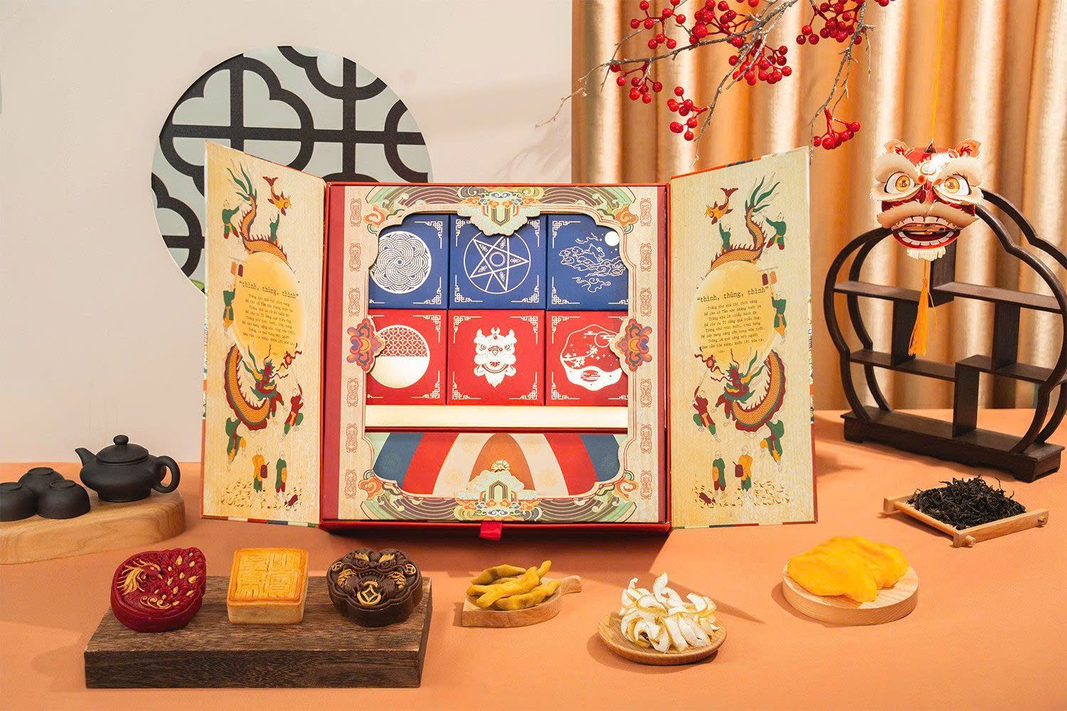 Kết cấu hộp sang trọng dựa theo hình ảnh "ngăn kéo tủ" xếp thành một bức tranh đặc sắc và vô cùng ý nghĩa. Chất liệu giấy in cao cấp được ép màng kim tuyến cùng như phụ kiện tạo sự độc đáo, sang trọng cho hộp quà.