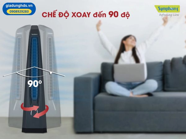 Bạn lo ngại luồng gió chỉ thổi ở một hướng thì giải pháp chính là Quạt tháp Symphony Surround i. Chế độ xoay đến 90 độ giúp cả không gian nhà bạn có thể đón được làn gió tươi mát mà không phải di chuyển chiếc quạt đi nhiều nơi. Thiết kế này phù hợp với bàn tròn, hay ngồi ở sofa…